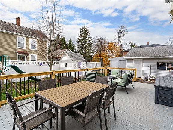 WARMTH, STYLE AND CHARM define this classic two-story home, offering quality, comfort, and functionality. Updated over the years, the spacious floor plan features a living room that opens to the kitchen and dining area. The stylish kitchen has ample cabinetry, granite countertops, a gas range, and included appliances. A large mudroom with built-in storage provides practicality just off the kitchen. The first-floor bedroom offers versatility as a primary bedroom or home office, as well as a full bath with shower. Upstairs, there are three good-sized bedrooms, a smaller bedroom, and a full bath with dual vanity and radiant floor heat. Additional amenities include a second-floor enclosed porch, walk-up attic, full basement, and a storage shed off the 2-car garage. Located between parks and downtown, just a short walk to the bike path, restaurants, amenities, and major routes, this home combines exceptional convenience and space in an ideal setting!