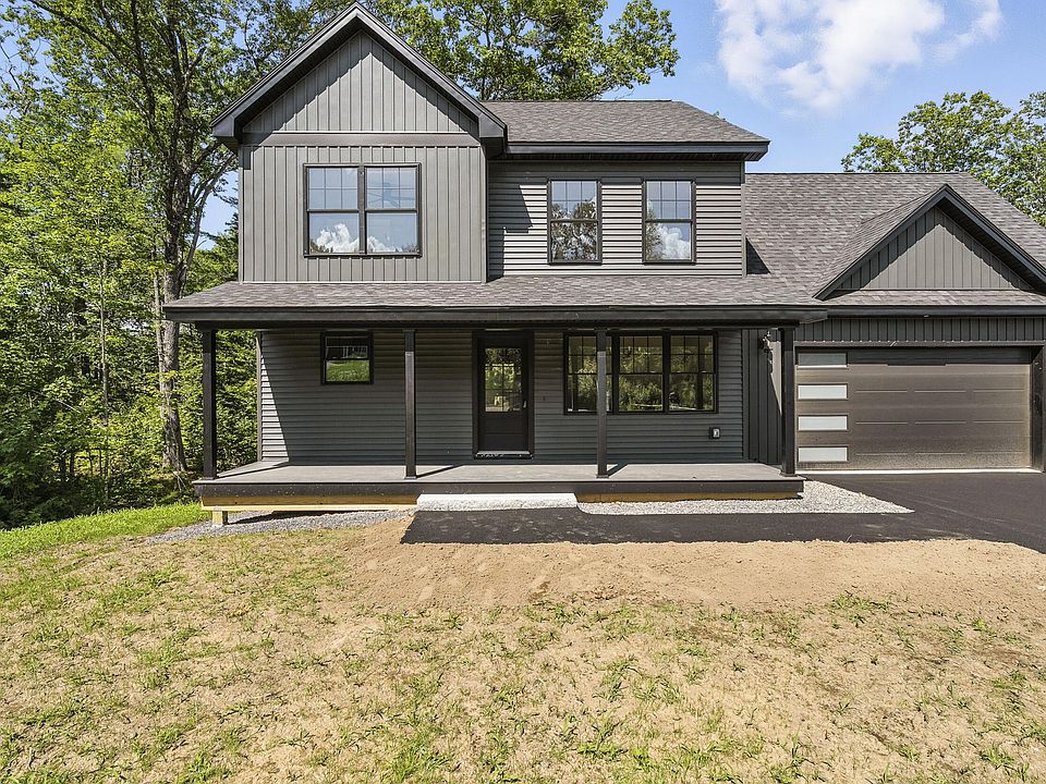 Welcome to Woodbrey Heights, Standish's newest community with public water, common areas and sidewalks. This quality built home has 3 bedrooms, 2.5 baths, 2 car garage with a finished bonus room above accessed from the 2nd floor. When you walk through the front door your eyes capture the open plan design and the beautiful White Oak hardwood floors that are through the home. The kitchen features stunning granite counters that continuing up as the backsplash. There is a beautiful island, a large farmer sink and stainless steel appliances with a gas stove. The dining area has large windows that bring in the natural light. The living room has a lovely feature wall with a fireplace that has a granite base. There is also a lovely lighted built in shelving unit to display your family pictures or sentimental items. The deck is just off the living room to enjoy the outdoors. Enjoy the convenience of the 2nd floor laundry. The bonus room can be whatever you imagine the space to be. The master suite has a walk in closet and a full bath with double sinks and a granite walk in shower (no need to clean the grout!). There are two more bedrooms on the second floor and a full bath. The full walk out basement can provide additional living in the future. Other added features to this home are the upgraded black windows, window and door molding, recess lights, lighted staircase and a garage door with side windows. With quality craftsmanship throughout this home checks all the boxes for easy everyday living. Located just minutes from North Windham, a short commute to Portland and close to Sebago Lake.