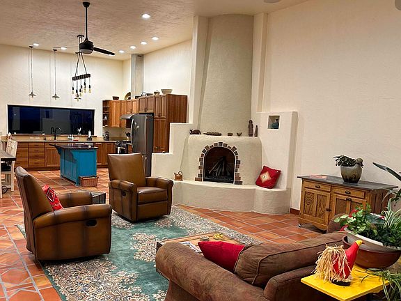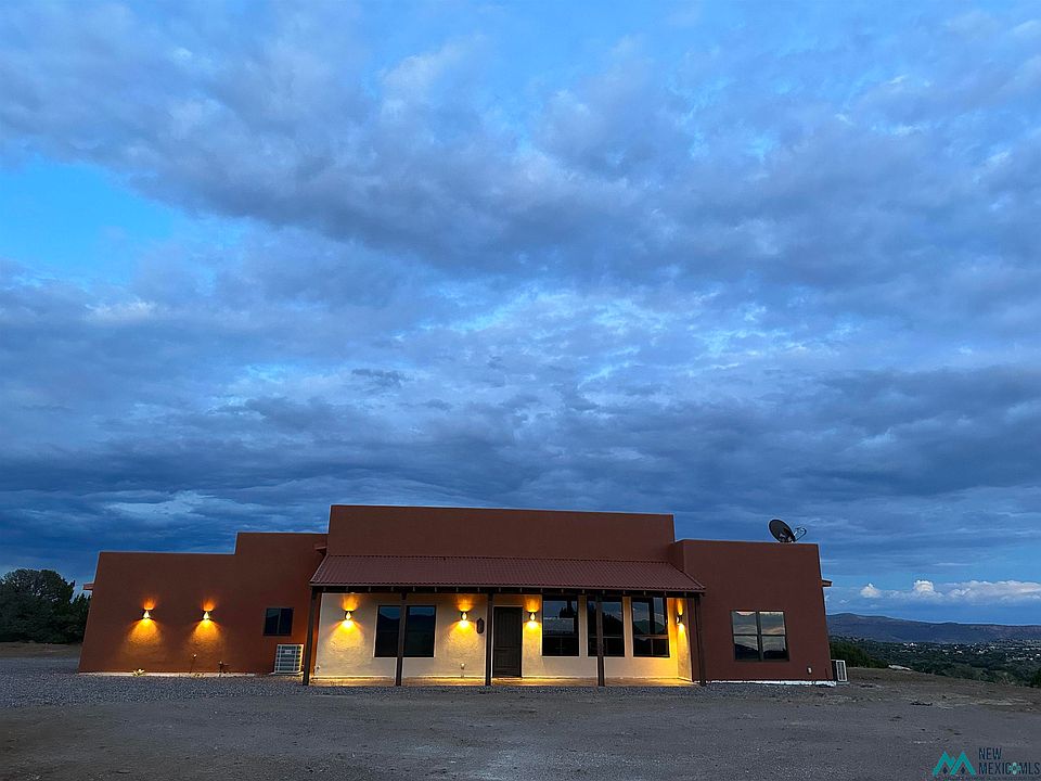 Country living on 10 acres just minutes from town! Classic southwestern style 3 bedroom/3 bath home built in 2021 is situated on a hilltop to take advantage of fabulous 360 degree views of mountains and valley. Watch each morning sunrise come alive from picturesque southeast facing windows and sliding glass doors. Saltillo tile leads you from the open concept main living space to either end of this split floor plan. Decorative tiles adorn a cozy kiva fireplace that adds southwest flair from the center of the home. Quartz countertops in kitchen and bathrooms & Kraftmaid cabinets w/ soft close throughout home. House has low-profile wired sound system & movie projector. Radiant heat throughout warms home in 5 different zones. House also heated/cooled by two heat pump systems. Huge 30 X 40 shop building w/ 12 X 40 lean-to, 16' overhead door, 220 elec service, plumbed bath and RV hookups. Property boasts a new gate w/ freshly graveled drive and is a blank slate ready for your landscaping.
