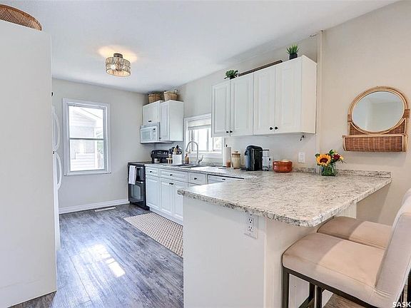 Impeccably maintained 796 sq/ft bungalow crafted in 1952, offering 3 bedrooms and 2 bathrooms. This residence has been extensively updated, showcasing newer flooring, countertops, and complete bathroom renovations, including ceramic tile backsplash and a luxurious soaker tub. Boasting a newly installed forced air natural gas furnace from 2021, along with central air conditioning, this property ensures year-round comfort. The beautifully landscaped yard is partially fenced and includes a two-tier deck plus a 432 sq/ft detached garage, which is heated and hosts a newer overhead door. Meticulously cared for, this home is turnkey with the perfect blend of modern amenities and timeless charm