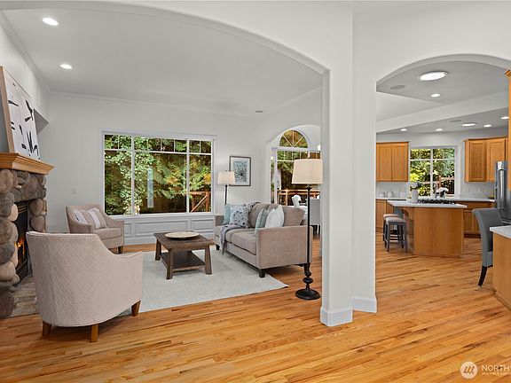 Tucked away on a quiet dead-end street in Downtown Kirkland’s desirable Moss Bay neighborhood, this beautifully updated 4BD + den, 2.5BA home perfectly blends privacy & walkability. Just blocks from Lake Washington, Google, shops, dining, & parks, you'll feel miles away in your own peaceful sanctuary backing to serene green space & creek. Enjoy newly refinished hardwood floors, new quartz counters throughout, & fresh paint inside & out. Main-level primary suite with ensuite bath plus versatile den/office. Upstairs, you'll find 3 additional beds & full bath. Enjoy the great room with cozy gas fireplace, the expansive deck & patio, 2-car garage, low-maintenance yard, no HOA, and top-rated LW schools. A rare find in a prime location!