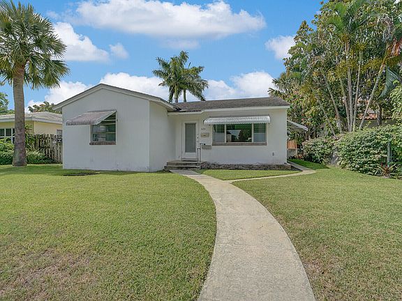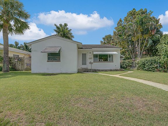 Concrete block home in the historic Northwood area. This residence features two bedrooms, 1.5 bathrooms, and stunning terrazzo floors throughout. It offers ample parking accessible from the back-alley street, along with a detached garage, shed, and fenced area suitable for a boat or RV. The property also has room for a pool. Conveniently located minutes away from the beach, park, boat ramp, tennis courts, downtown West Palm Beach, and Singer Island.