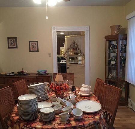 This lovely home has so much to offer, large rooms, modern kitchen, new hardwood floors, roof is only 6 yrs old! There is also a large covered side porch to enjoy while dining or entertaining. There is also a huge 2 car detached garage and a driveway that holds 4 parked cars!
