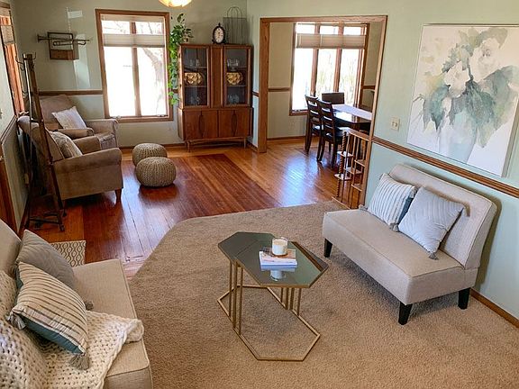 This Beautifully Updated 1 1/2 Story Home Is Full Of Charm! You Will Immediately Fall In Love With The Large Covered Front Porch With A Swing And Plenty Of Room For Your Outdoor Furniture. As You Walk Through The Front Door You Come Into A Large Living Room, Complete With Charming Built-Ins, A Wood Burning Fireplace And Beautifully Refinished Hardwood Floors. The Living Room Opens Up To The Dining Room, Which Has Plenty Of Space For Your Dining Table. The Dining Area Is Open To The Kitchen Equipped With A Bar Top, And Lots Of Cabinet And Counter Space Along With A Huge Walk In Pantry! Also, On The Main Floor Is A Recently Remodeled Bathroom, Laundry Room And Bedroom. Upstairs You Will Find Two Additional Bedrooms That Are Full Of Character, A Huge Bathroom And A Non-Conforming Room That Is Currently Being Used As A Walk-In Closet. The Basement Is Non-Finished But Is Being Used A Family Room, Exercise Room, Game Room, And Even More Storage Space! Outside, The Large Backyard Is Perfect For Play And Entertainment. The Over-Sized Two-Stall Garage Has Space For Vehicles And Storage. The Yard Behind The Garage Is A Great Spot To Store A Camper Or Boat Or Enjoy Family And Friends Around A Fire Pit. There Was A New Roof In 2018 And More Updates Throughout. Located Across The Street From A Beautiful Park And Pool And Walking Distance From The City Golf Course, This Property Is A Must See! Call Today For Your Private Showing!