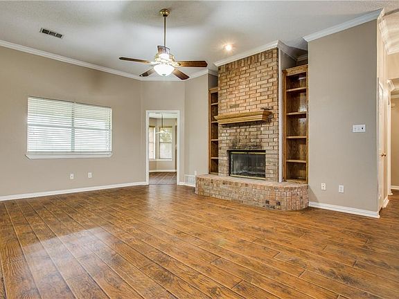 MOVE IN READY!! Beautiful 3 bedroom 2 bath 2 car garage home in Burleson ISD. Wood laminate flooring in living room, all 3 bedrooms an hallways. Great location, close to shopping, restaurants and schools! Large living room with fireplace and built in shelving, split bedrooms, blinds on all windows, and master bath has jetted tub, seperate tile shower, walk in closet an double sinks.