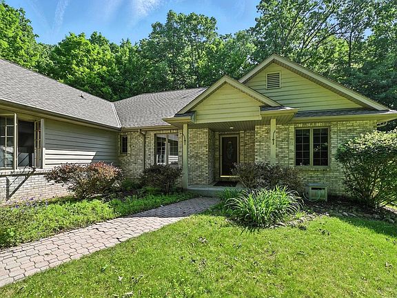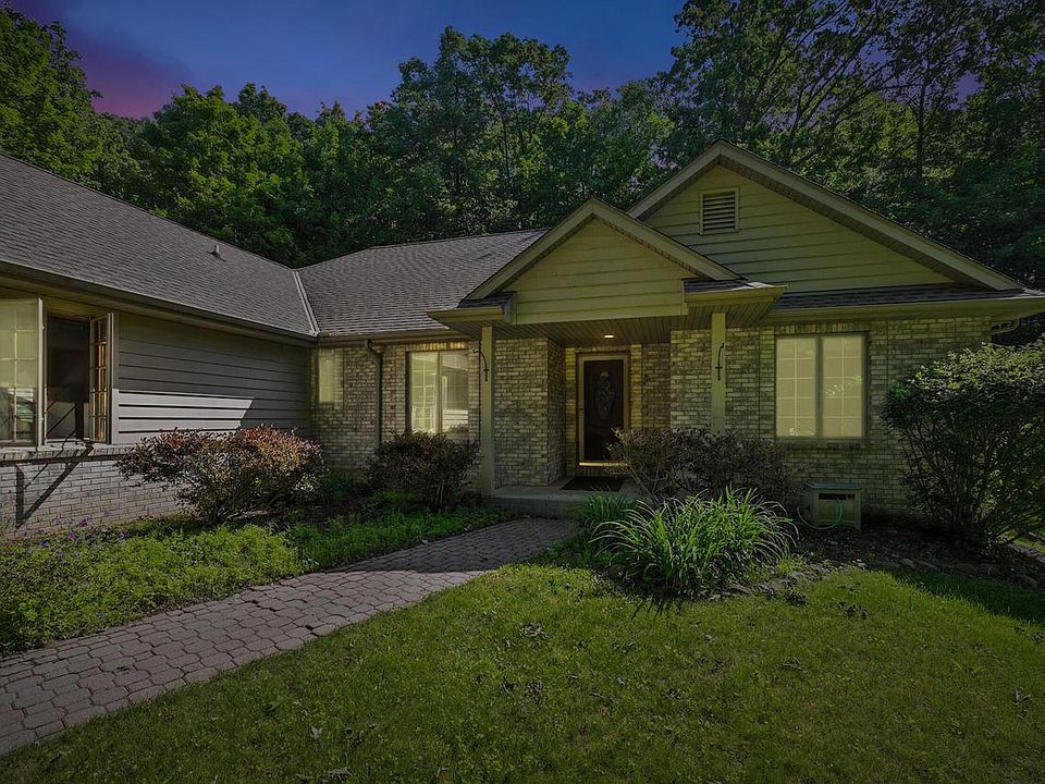 Beautiful 4BR/3BA split-style ranch on 1.5 wooded acres near Breuer Park! This 3,086 sq ft open-concept home features vaulted ceilings, skylight, and hardwood floors. Enjoy a spacious eat-in kitchen, cozy gas and natural fireplaces, and a luxurious primary suite with en suite bath. The finished lower level offers flexible living space, perfect for a rec room or office. With a 2.5-car attached garage and an additional 1.5-car detached garage, there's room for all your hobbies. Private, peaceful setting with walking trails just steps away--comfort and nature in one perfect package.