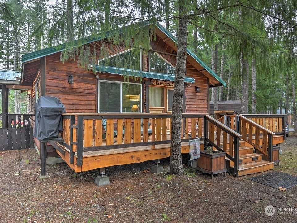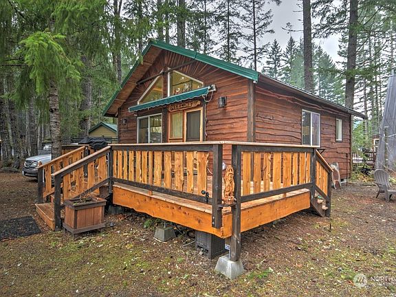 Enjoy year-round fun in this beautifully maintained cabin in wonderful Packwood! Quality-built cabin features a great room w/ vaulted ceiling, lots of natural light & an open kitchen w/solid wood cabinets, newer appliances, large pantry & a cozy wood cabin atmosphere. PLUS, there's a finished 12' x 16' bunk house, perfect as a 2nd bdrm or fam rm. Large deck w/ electric awning. Stacked W/D, forced air furnace, vinyl windows. 1/4 acre+ lot w/ fenced area for pets, fire pit & horseshoe pit. Just 22 miles to White Pass, this is your winter ski chalet & your summer cabin is your ticket to Mt. Rainier, lakes, rivers & hiking. Vacation rental possibility too. High Valley community assn incl a 9 hole golf course, 2 pools, clubhouse & river access.