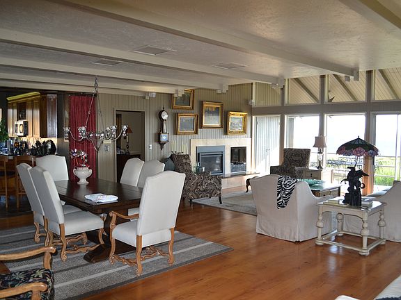 Magnificent views from this one-of-a-kind canyon rim home. There is nothing ordinary about this elegant home w/custom gourmet kitchen, cherry wood cabinets, granite, high-end stainless appliances, lighted glass cabinets, slate, Travertine & Alder flooring, main level master bed/bath, balcony guest bedroom w/en-suit bath, huge family room w/ built-in book shelves, lg. living room w/gas fireplace and floor to ceiling windows. This backyard is a private oasis. This home was updated throughout in 2005.