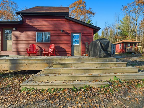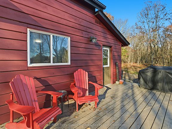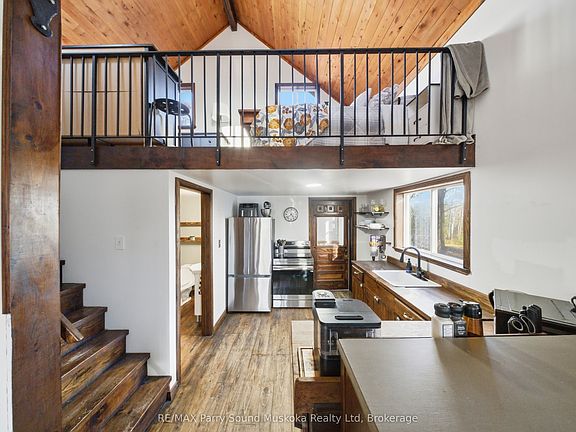 This charming one-bedroom home sits on 2.47 acres of private, wooded land, making it perfect fit for first-time buyers or anyone looking to downsize and enjoy a quieter pace of life.Inside, the space feels warm and welcoming, a wood stove provides both efficient heat and that classic cottage ambiance. The 993 square foot open loft layout makes great use of the space, offering a bright living area, a practical kitchen, a four piece bathroom, and an airy upstairs bedroom. High ceilings and large windows fill the home with natural light and connect you to nature. The property is private and full of potential, ideal for gardening, creating and exploring your own trails, and simply relaxing among the trees and wildlife. The property feels very private, yet close enough to Parry Sound or McKellar for everyday convenience.Located just 20 minutes from Parry Sound and 10 minutes from McKellar, and only 5 minutes from The Ridge at Manitou Golf Club