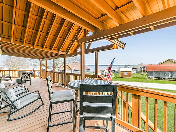 Rest and relax in this beautiful fully furnished home with a stunning view of Lake Livingston. This home rests on an elevated lot and has a massive front porch which allows you to enjoy the amazing views of the water regardless of the weather. Entering the home you are greeted with a family room that opens to the kitchen. The kitchen has been updated with quartz countertops, custom built cabinets that soft close and tile backsplash that compliment the gorgeous kitchen. Large primary bedroom with a full bath that offers a separate shower and garden tub w/ double sinks. More amazing features include 12x24 storage shed/workshop with lighting, a work bench, roof and insulation were recently updated along with the exterior of the home being painted. The community is gated so it is quiet and private. The community also offers a pool, boat ramp access, basketball courts, and a clubhouse and pavillion. Tons of neighborhood events that include Chili Cook-Offs, Golf Cart Fun Runs and Live Music.