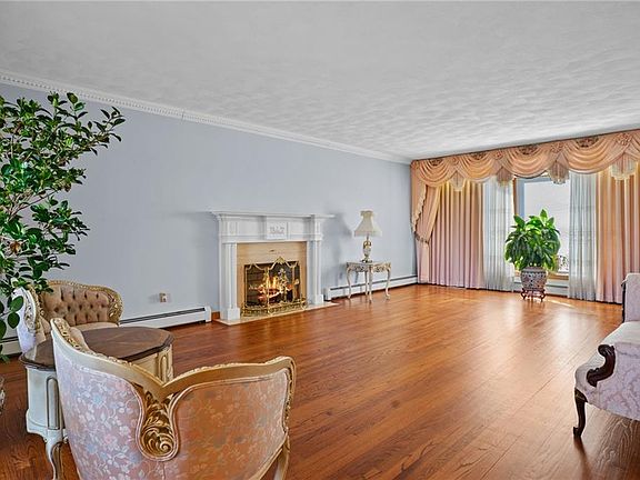 Magnificent Custom Brick Colonial sited in Coveted Western Cranston! ** Captivating hardscape create a magical landscape for this exceptional home with park like grounds. ** Timeless sophistication & abundant space combine in this exceptional home which feature a gracious eye catching cathedral foyer & curved staircase, flanked by a grand living room with gas fireplace, formal dining room & den with one of a kind Bermuda stone fireplace & walk out to the rear patio which is ideal for entertaining. ** The kitchen features granite counters, cherry cabinets, imported Italian tile & sliders overlooking the yard & patio with privacy provided by a lovely wall of 15' hedges. A half bath completes the first level. ** The second level features four (4) bedrooms, two (2) full baths & a luxurious master with en suite bath. All windows have recently been replaced; home is equipped with a high efficiency 6 zone Navien heating system, central ac, sprinkler system & custom 2 car garage with mahogany wood doors. Pride of ownership abounds in this single owner, well maintained property convenient to all major highways, shopping & restaurants.