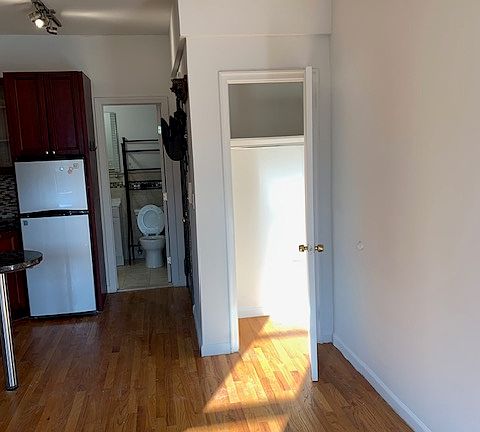 Beautiful renovated studio in the heart of the East Village. Features a granite kitchen with stainless steel appliances and a convenient built-in breakfast bar. Chic marble bathroom. The apartment has loads of charm with its exposed brick, faux fireplace, and hardwood flooring. Quietly situated in the back of the building, and 4 short flights up. The building is located in the heart of the East Village on a quiet street. Convenient to ample forms of public transportation and all of the wonderful boutiques, restaurants, and nightlife in the East Village.