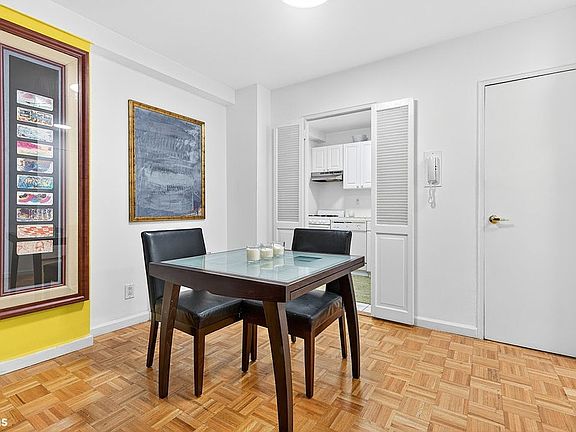 Brand new to the market and priced to sell, this oversized studio is ready for you to call home. Enjoy the distinct spaces; entry foyer, full separate kitchen, dedicated dining area, dressing area and a living/sleeping area. Also featuring bountiful storage, hardwood floors, and a reasonable maintenance, too! Please note 3R is being offered fully furnished including a modern white customized Murphy bed with extra storage. Just bring your toothbrush. Peaceful vibe, and pin-quiet, too!