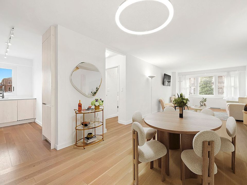 The pet-friendly co-op allows 80% financing and is open to co-purchasing, gifting, guarantors, and pied-à-terres. Subletting is permitted after two years of ownership with annual board approval and 60 days’ notice.