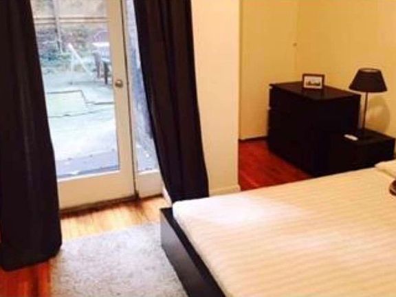 massive Renovated King sized one bedroom with beautiful hardwood floors, high ceilings and Exposed brick wall in a clean and well maintained building! This large apartment has a Massive private Garden/Patio for those summer nights and the bedroom fits a complete King/Queen size bed sets and furniture. The living room fits a complete large couch set and furniture and the windowed kitchen has nice appliances. Shares, Guarantors and cats are allowed