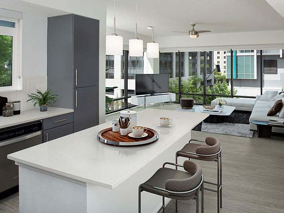 We offer self-guided, live video, and team member tours. Call 24 x 7 to schedule! Camden Lake Eola is THE place to call home in the South Eola/Thornton Park area of Downtown Orlando. Experience elevated living in our non-smoking 1, 2, and 3-bed apartment homes. The 12-story community also features live-work apartments and an exclusive penthouse floor. View our 360 tours and available apartments to narrow down your search! You will love walking into your gorgeous, new, open-concept apartment home with beautiful wood-inspired flooring. Love to entertain? Your gourmet kitchen with stainless steel appliances, quartz countertops, and under-mount sinks with gorgeous fixtures is a chef's dream. The beauty of two options in finishes is yours at Camden Lake Eola. Cabinetry finish options in mocha are located on odd-numbered floors. Grey cabinetry finish options on even floors, including the Penthouse Floor. There is even a large kitchen island with additional storage space to give you plenty of room to whip up that delicious meal or for tasty takeout. Need to work from home? Our floor plans have dining room space that can easily convert to a home office. Not only does your apartment feature a full-size washer and dryer, spacious walk-in closets, a large garden tub, and solar shades, it also has stunning views of Downtown Orlando from your private balcony. Your pets are family too! We welcome cats and dogs, up to 3 pets per apartment, with no weight limit. Call us with any pet-related questions. Have a small business? Camden Lake Eola has a total of eight live/work apartments with prime street-level retail locations! Camden residents can take advantage of an exclusive discount with CORT to rent furniture and accessories for your apartment home. We offer live video, self-guided, and team member tour options. Pricing and availability are subject to change until a quote is saved.