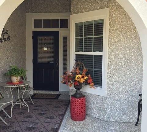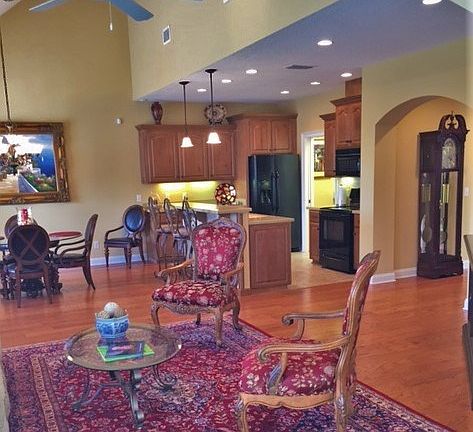 A true rarity, hardwood floors throughout home, Corian counter tops, extra sunroom, extra gutters, patio features inlaid pavers and overlooks one of the beautiful lagoon fountains. Home is near the "LAIR" and man made beach or close to the community pool, for an afternoon of basking in the sun and enjoying the rock waterfalls. This home is in one of the most well built and well established gated communities. Double garage and lush landscaping are just a few of the extras this home has to offer.