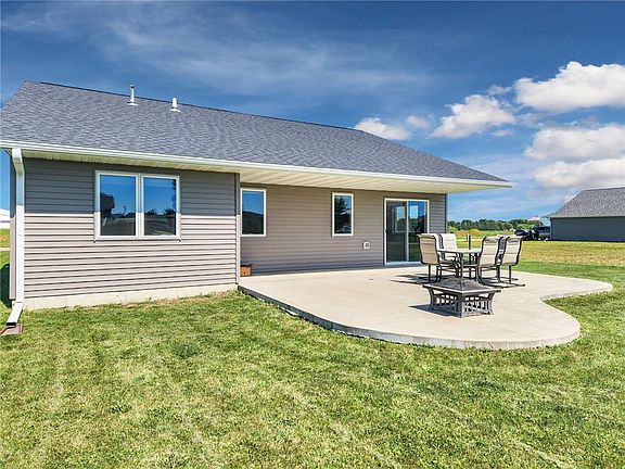 Welcome to this beautiful home that offers the convenience of single-level living! With only one owner since its completion in 2018, this home has been well cared for and is nestled in a quiet, newer development just steps from Grand Meadow schools. Featuring an open-concept layout, vaulted ceilings and in-floor radiant heating with two separate zones for comfort. The kitchen is beautifully appointed with hickory cabinets, a pantry and LVP flooring. Walk into the primary suite offering a convenient laundry area, walk-in closet & bathroom! Additional highlights include paneled doors, a two-car garage and a walkout to a newer concrete patio, complete with a firepit, ideal for entertaining this summer! Set on a spacious lot, the property offers plenty of space for outdoor activities and with Rochester just a 25-minute drive away, you'll enjoy small town living and easy access to city amenities!
