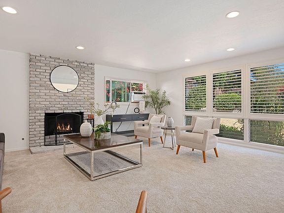 Built in 1960, the home reflects the charm of its era with a comfortable, well-designed layout. The living room, warmed by a classic brick fireplace, provides a cozy gathering space, while four bedrooms offer flexibility for family, guests, or a home office. Natural light enhances the easy flow of the interiors, making the home feel welcoming and bright.