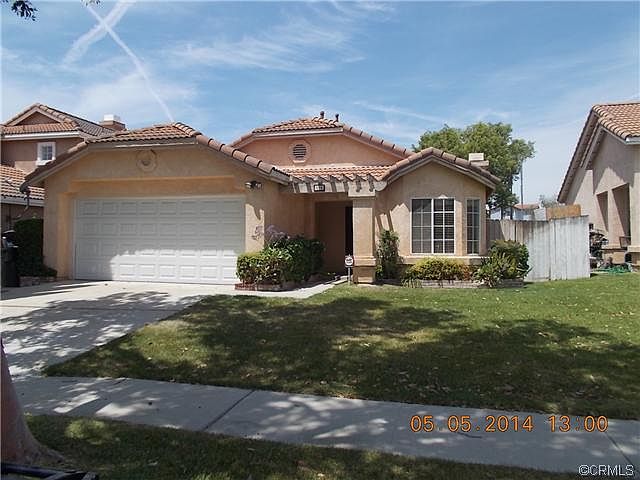 This charming single story home is tucked away on a lovely street in Corona. Enter into an open floor plan with the kitchen and eating nook off to the right. A Cozy formal dining room and living room complete with a fireplace. Vaulted ceilings in the living room make it light and bright. Easy access sliding glass door takes you to your backyard where you find green grass and mature trees, perfect for those summer nights. There are 3 bedrooms 2 with mirrored closet doors. The master bedroom has duel sinks, an oval bathtub a walk in closet and a sliding door to the patio. Indoor Laundry room with direct access to the two car garage. This home backs up to the Cresta Verde Golf Course so you have no neighbors directly behind you. Close to shopping and the freeway.