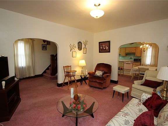 Spacious 3 Bedroom Home situated Nicely on Dead-end Street Very Close to Town w/ Detached Garage, Off Street Parking plus additional available parking from a lot in back of home. Covered Front & Back Porches! Quality Built with Hardwood Flooring under carpeting & Plaster Walls. Gorgeous Woodwork through-out including Big Baseboards & Gorgeous Wood Staircase! HUGE Full Walk-up Attic. Massive Open Basement w/ Bathroom. Hot Water Tank 2015, Furnace 2003. Formal Separate Dining Room PLUS Eat-in Kitchen! Large Living Room w/ Wide Openings. Nice Big Foyer. Deep Linen Closet in Upstairs hallway. Move in Condition