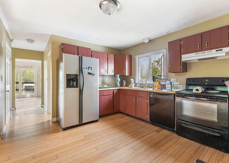 Finally vacant—tenants have moved out, and this property is ready for your imagination! Build your dream home, farm, or family compound. This charming 3-bedroom Gambrel offers 1.5 baths, a formal dining room, a cozy family room, a bright sunroom, and an efficient kitchen with a pantry. The spacious front-to-back living room welcomes gatherings. The horse stable adds 2 rooms and a bathroom in addition to the main house. With 3.5 acres of usable land, a paddock, and sewer service, this property is ideal for restoration and new possibilities. Perfect for horse lovers, it features a 30x50 barn with 9 stalls, a partially finished unit above, a 60x90 riding ring, and two corrals. Farming options abound—perhaps an egg farm or other ventures! This unique property blends agricultural and residential charm with commercial potential. Don’t miss this incredible opportunity to create your dream estate! Overgrown property ready for you, sweat equity, contractors, flippers, dream home lot.