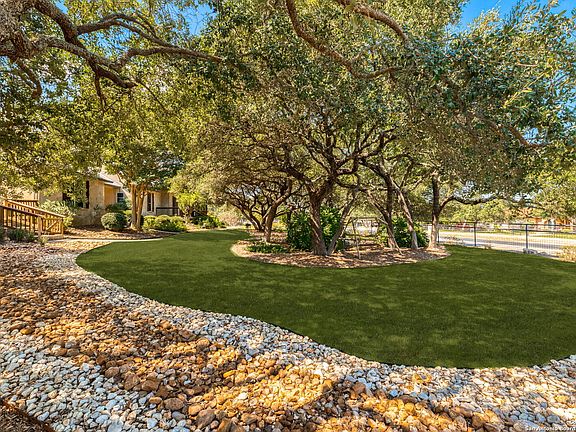 Located in the gated Lantana Ridge community, this beautifully maintained 3,081 SF single-story home stands out with its incredible 24'x36' air-conditioned 3-stall shop and stunning, expansive landscaping. Designed for car enthusiasts or hobbyists, the shop complements three total garage spaces. Outdoor living shines with mature trees, xeriscape design, a dedicated garden shed, and a serene deck perfect for entertaining or relaxing under the Hill Country sky. Inside, the 3-bedroom, 3.5-bath layout features ensuite baths and walk-in closets for every bedroom, including one fully accessible suite with walk-in shower and grab bars. The split primary suite offers privacy, while soaring ceilings, open flow, and abundant storage create an inviting sense of space. Thoughtful upgrades include a durable metal roof, gutters with leaf guards, solar screens, water softener, and a drip irrigation system-providing efficiency, comfort, and low-maintenance living. Set on a desirable corner lot with sweeping Hill Country views, this home delivers craftsmanship, comfort, and character. Explore the INTERACTIVE 3-D Virtual Tour today.