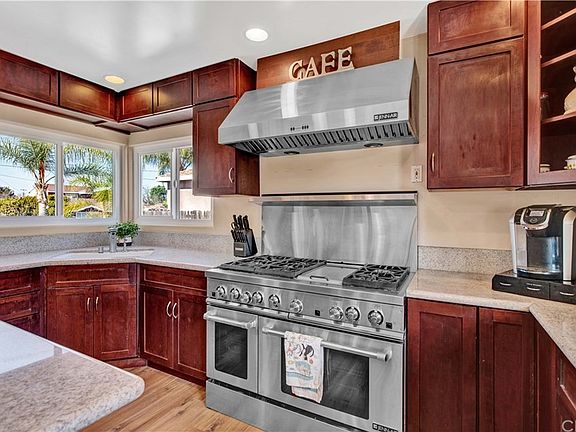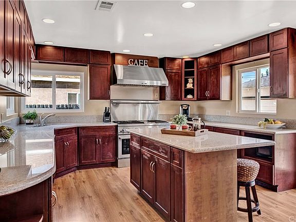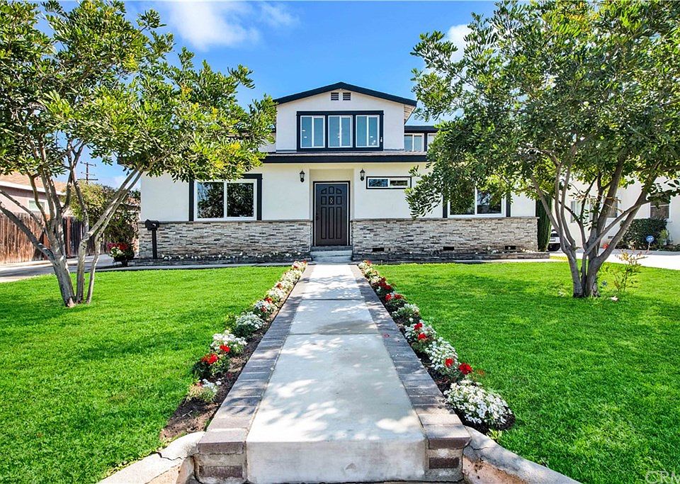 Beautifully remodeled,open floor plan w/incredible curb appeal home,4 bedrooms(2 Masters),3.5 baths,exquisitely remodeled kitchen w/a phenomenal island & cherry wood cabinetry w/ utterly MASSIVE backyard,relaxing deck & peaceful balcony,all feeding some of the best schools in Brea Olinda school district.Colorful flowers adorn brick lined & newer concrete walkway to the oversized front door & stacked stone front into spacious living room w/ extra tall ceilings,recessed lighting & dual ceiling fans along w/ beautiful laminate flooring."Chef's Delight" gourmet kitchen has granite topped counters,cherry wood cabinetry,lazy susan,JennAir 6 burner stove top w/extra griddle,new garbage disposal & commercial Grade stainless-steel built-in refrigerator.Large formal dining room w/French doors to wonderful deck.Huge downstairs master w/mirrored wardrobe sliders,walk-in shower w/tiled walls & newer vanity/fixtures,even has cute lil' pet room.Dual pane vinyl windows,extra tall baseboards,new carpet & decorative door casings all around!Extra guest bedroom downstairs w/adjoining full bathroom!Fantastic upstairs master is huge 15 x 14' w/balcony access! 4th bedroom is extra large w/lighted ceiling fan,laminate flooring,lighted ceiling fan,even an added utility room.Incredible grassy play area in back w/ large concrete pad for half-court basketball.Newer HVAC,copper plumbing,TWO 200 amp panels,75 gal water heater,Wired for cable/tv in every room.Electrical outlets under eaves for Xmas lights!