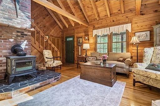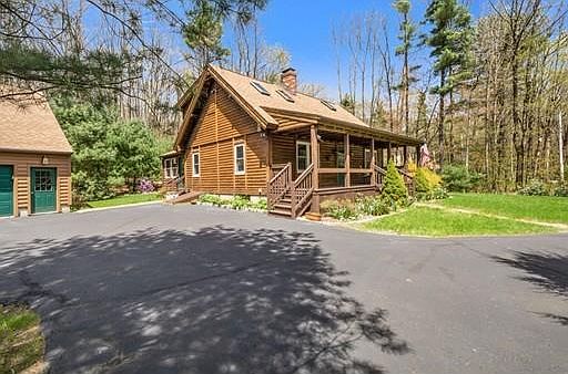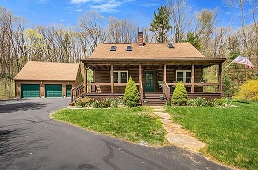Follow the winding driveway to this fabulous 3 BR 2 BA Log Home and 2 Car Garage on 2.5 Acres! Beginning with the vaulted Living Room to the bright Sun Room, the renovated Kitchen to the 2nd floor open Loft and Master Suite get-away, this home exudes a wonderful warm character while celebrating the dramatic soaring skylit beamed ceilings and wood detailing of a well done log home! Open Layout first floor centers on cozy woodstove in the Living Room, includes the Dining Area, stylish Kitchen and two Bedrooms plus full Bath. Second floor open Loft has birds-eye view of the living area below and includes a vaulted skylit beamed Master Suite with full Bath! Great detached 2 car Garage has walk-up 2nd Floor. Don't miss this one!!!