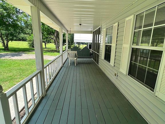 Spacious Home great for family gatherings overlooking a pond. This home sits on 4.09 acres with 3 bedrooms and 3 full baths and over 2100 square feet. Large living/dining room featuring a stone hearth fireplace with a wood burning insert. Eat-in kitchen with center island and breakfast bar. There is a multi-purpose room off the foyer that could be used as a den, playroom or office. Great flow throughout for easy entertaining. Rocking chair front porch, side screen porch and back screen porch overlooking the shared pond. Fenced area for a mini farm. Do not miss your chance to see what all the property can offer.