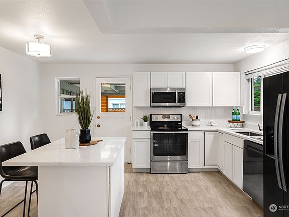 $75,000.00 PRICE REDUCTION! Beautifully updated rambler with fresh interior paint, new kitchen cabinets, quartz countertops and appliances, new roof and new heating/air conditioning. 3 BR 2Bath, Primary Bath Suite with heated tile floors and soaking tub. Separate studio/workspace in back of house plus an oversized 864 sq ft Detached 2.5 car garage and shop area. Detached accessory dwelling unit (DADU) potential! Walk to Costco and transit center. 4 blocks to Aurora Avenue and great restaurants etc. Excellent Shoreline School District.