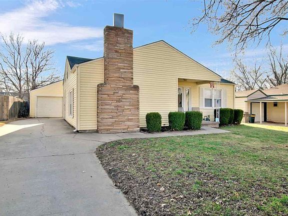 Cute Mulvane Ranch with 3 bedrooms & 2 baths located on a quiet,tree-lined street just one block from the park! Plenty of space for your family, 1574 sq ft total, that includes a step-down family room with a cozy gas fireplace just off the living room! Split bedroom plan has 2 bedrooms and bath at one end and a spacious master bedroom with private bath on the other end! Spacious eat-in kitchen plus a nice-sized separate dining room! Covered front porch and back patio, detached oversized garage with nice workshop area for the guys, and well & sprinkler system to keep the yard beautiful! Heritage roof is only 2 1/2 years old! An easy walk to the primary and Jr High schools for your children! Don't miss out--call for your private showing today!