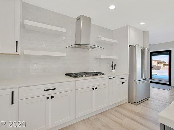 SINGLE STORY POOL HOME w/RV PARKING. 12 foot pocket door/slider opens to NEW infinity edge pool w/strip view. FOUR bedrooms & 2 baths!! Home has been remodeled. Master bath w/ CUSTOM oversized shower, separate tub, and double sink, kitchen has been UPGRADED with NEW quartz, NEW custom cabinets and NEW stainless upgraded appliances, landscaping complete with fresh and synthetic grass..Just about 2/3 acre complete with concrete pad w/electrical for detached garage. New septic tank This home will not disappoint!!