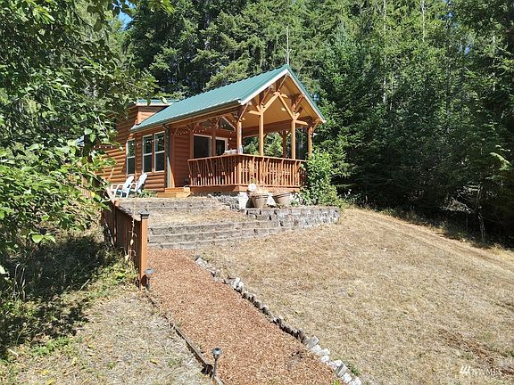 Relax on your own private 5 acres of forested land with a view. This beautiful Park Model log siding cabin features plenty of natural light, vaulted ceilings, w/d hookup, covered deck area with built-in benches, large patio, and parking right next to cabin. Stairs take you up to a large sleeping loft where you feel like you are sleeping amongst the trees. At the end of a native plant lined path you find a shed to store your recreational equipment. Invite your friends to hook up their RV's to enjoy all the canal has to offer. Gather clams and oysters on the nearby Olympic Trails Community beach or hike one of the areas many photo worthy trails. Furnishing are negotiable.