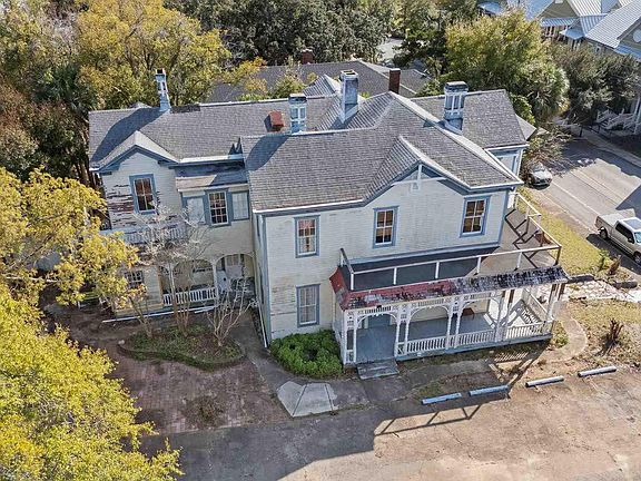 Step inside this Queen Anne inspired Victorian estate with over 4,000 square feet, over a third of an acre, and zoned to be used for both residential and commercial purposes. Equipped with plenty of parking, a rare theater window, soaring high ceilings, dramatic molding, several walk through windows to the porches and balconies, and original heart pine floors, the possibilities are endless. We listed it as a 5 bed, 3.5 bath home, but as you walk through and see the additional sitting rooms that can be used for offices, dens, or libraries, you will quickly see how many ways you could go about making this your perfect space. The original kitchen would have been on the first floor on the east side with the half bath, and would make a great first floor kitchen. The previous owners chose to create a kitchen on the second floor with a butler's pantry on the first. Imagine bringing this back to it's original glory as a primary residence, using it as office space, a little of both, or even split into 4 short term rentals. She is a beautiful piece of history in the North Hill Preservation District, blocks from everything downtown Pensacola has to offer, and needs to find the next owner to lovingly restore her. She needs a good deal of work, so Cash and renovation loans only, no seller/creative financing.