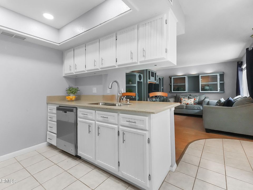 In addition to offering a spacious living room, wall-niche cabinetry, entertainment center, separate dining area, laminate, carpet, & tile flooring in all the right places, galley kitchen with Corian countertops, white painted cabinets, & S/S refrigerator, a separate built-in pantry with additional mini-freezer, & peninsula with breakfast bar provide ample room for those chef-inspired events. A hallway leading to a full guest bathroom, washer & dryer, and two sizable bedrooms, including custom built-in desks & cabinets, a primary bedroom with its own en-suite bath, & spacious closets with custom designer touches are likely to meet all your living & storage needs alike. If that were not enough, this unit is even offered fully-furnished to make it move-in ready should you desire!