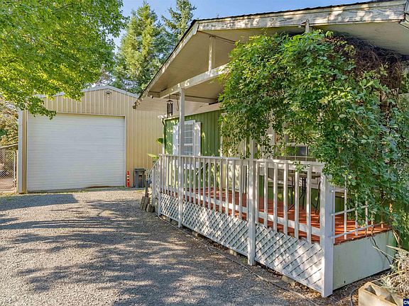 Charming setting in Mill City with a back yard oasis. Zoned Commercial Highway, great location for a home business featuring a huge 24'x36' SHOP w/wood stove. Seller has recently updated with new appliances, toilets, tankless water heater & auto garage door @ shop. New ext/int paint. Heat pump/furnace recently serviced. 3rd bedroom has a slider to backyard making a great office space.