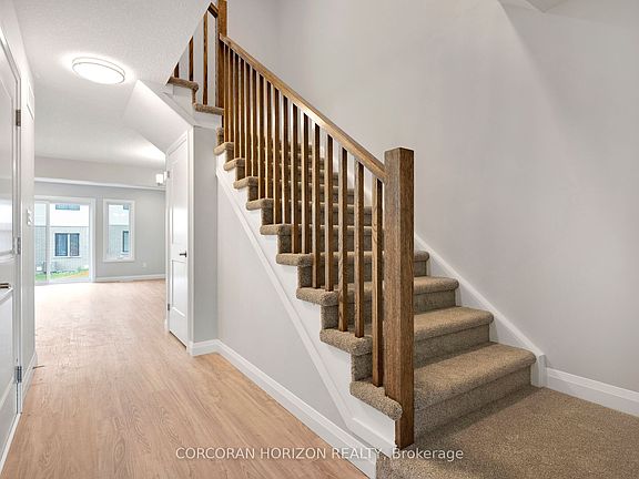 Introducing Unit 87 at Coventry of Stratford, a newly constructed townhome that perfectly balances modern design with everyday practicality. This three-bedroom, two-and-a-half-bath residence offers a bright and airy main floor featuring an open layout, large windows that flood the space with natural light, and a contemporary kitchen with ample counter space. The living and dining areas create an inviting environment for both relaxing and entertaining. Upstairs, the primary suite impresses with a walk-in closet and private ensuite, accompanied by two additional bedrooms and a full bathroom. A conveniently located laundry area completes the upper level. Additional highlights include an attached single car garage, private driveway, and a full basement providing abundant storage options. Nestled in a peaceful, family-friendly neighborhood, Unit87 is just minutes from schools, parks, shopping, and Stratford's vibrant downtown, including theaters, restaurants, and cafes. Experience the perfect blend of small-town charm and modern convenience in this thriving community.