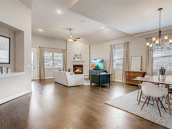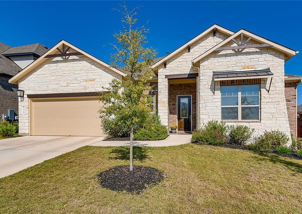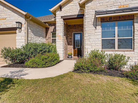 This gorgeous Scott Felder home features a well appointed kitchen with breakfast bar, quartz countertops, farmhouse sink and ample storage. The kitchen is open to the family room which boasts a stone fireplace and wood floors. The primary bedroom features large windows overlooking the hill country and a spa-like bath with frameless shower. The study is conveniently located off of the breakfast dining area and the secondary bedrooms are separated from the main living area for additional privacy. This home backs to a ranch so there are no neighbors behind. You can enjoy the hill country views when relaxing on the extended covered back patio.