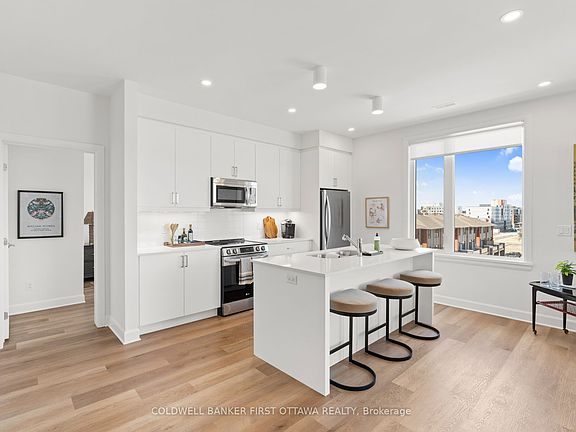 TREMENDOUS VALUE FOR A 1 BEDROOM PLUS DEN SUITE in sought after Wateridge Village! What could be better than living in this vibrant new community adjacent the Ottawa River? Ideally situated close to the RCMP, Montfort Hospital, CSIS, NRC, Rockcliffe Park and just 15 minutes to downtown. Built to the highest level of standards by Uniform, each suite features quartz countertops, appliances, window coverings, laundry rooms, bright open living spaces and private balconies. Residents can enjoy the common community hub with gym, party room and indoor and outdoor kitchens. A pet friendly, smoke free environment with free WIFI. Underground parking and storage is available at an additional cost. Available nOVEMBER/2025. Photos are of model unit.