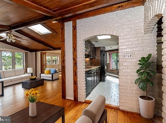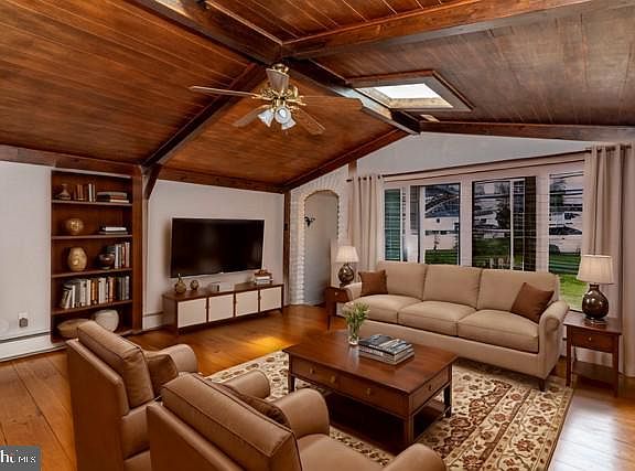 Charming Custom Rancher in Eastampton Township! Tucked away on a peaceful half-acre lot, this custom rancher is full of character! The home is bathed in natural light, enhanced by several new skylights and a brand-new roof (2023). Inside, the cottage-style kitchen features faux brick arches, adding warmth and charm, a retractable toaster, stone countertops and gas cooking. This home offers three spacious bedrooms, two full baths, and an abundance of closets and built-in storage through out. The primary bedroom boasts plenty of natural light with skylights located in the bedroom and the primary bathroom. The primary bathroom offers access to the walk in closet, a stall shower and a single vanity, while also connecting to a room with a toile and second vanity that could be used as a half bathroom. The multi-zoned baseboard hot water heating ensures efficient comfort throughout the home, while the single-zoned central AC keeps things cool in warmer months. The finished basement is a standout, complete with a bar, fireplace (as-is), and a dark room—already plumbed for the potential addition of a third bathroom. The laundry room is also conveniently located on this level. Outdoor spaces include an enclosed porch with built-in storage, a side deck, and a fenced rear yard—perfect for relaxing or entertaining. The property also features a one-car garage with a workshop area that offers attic access with floors for storage, a shed (as-is), and a garden shed for added storage! With the added convenience of being conveniently located near major roadways and shopping, while still providing the serenity and peace of rural living...this home is bound to check all of the boxes on your wishlist! Don't wait, make an appointment to see this home today! This property is an estate sale and is being conveyed in as-is condition. HIGHEST AND BEST OFFERS DUE BY SUNDAY 4/6 by 7 pm