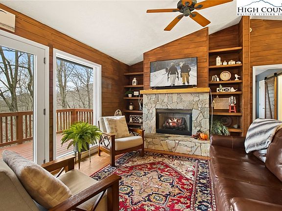 Cozy 4 Bedroom 4 full bath, mountain home located in the gated community of Crystal Mountain with two primary suites on the main floor, each with its own en suite. There are two additional rooms on the lower level used as bedrooms, each with its own bathroom. This home also features two living areas comprising a total of 2400 sq/ft. As you enter you will be greeted with a warm but open living space. Enjoy the gas fireplace while watching the quiet snowfall from a wall of windows. The kitchen has plenty of storage, & a functional layout to entertain. A tucked away corner of the kitchen houses a stacked washer & dryer for added convenience. The decks are an extension of the living areas with lots of room to enjoy the outdoors. The lower level includes 1220 sq/ft with an air hockey table, Pac-Man machine, playing card table, popcorn machine, a movie room, & extra sleeping areas. Seasonal views of both Sugar Mtn & Beech Mtn ski slopes can be spotted in the distance, & a short one block walk provides a view of the famous Grandfather Mtn. The home is being sold furnished with few exceptions so all you have to do is add your personal touches! Property has a 2BR septic permit, but the home offers up to two additional, sleeping areas. Seller is a licensed NC Broker. External security camera with no audio is present.