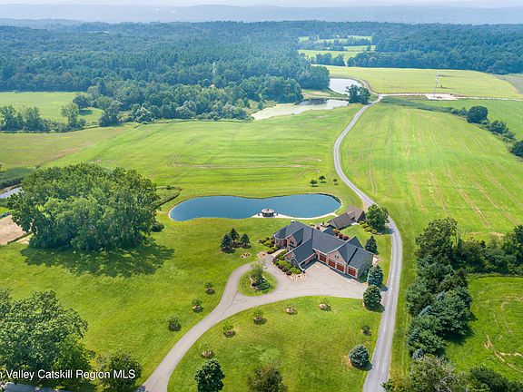 A private outdoor paradise perfect for recreation, agriculture, equestrian or hunting. This 9,565 sqft home has all one could ask for. Offering spacious living areas, hardwood floors, custom media room perfect for movie nights, sizable bedrooms, finished walk-out basement, there's ample space for both family and guests to gather and unwind. With spa/hot tub room, gym, a 2,400 sq. ft. heated garage with finished game room above, two accessory buildings providing additional storage or use as garden sheds, all connected by a stone patio with a covered grilling area ensure non stop fun and entertainment. Plus central air conditioning, backup generator, and high-speed internet. The home sits on 481 acres comprised of stunning forests and expansive fields, the property boasts 7+ miles of trails, 3 ponds, stream and reaches all the way to Schodack creek which ties to the Hudson River.