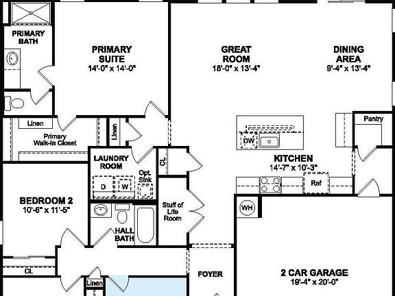 Discover elevated single-story living at Aspire at The Trails, a community designed for modern comfort and convenience. The Adriatic plan features 4 bedrooms and 2 baths in an open, light-filled layout ideal for everyday living and entertaining. The gourmet kitchen shines with Sarsaparilla-stained cabinetry, brushed Satin Nickel hardware, Valle Nevado granite countertops, and a spacious island with a built-in sink, perfect for casual dining or gathering with guests. The kitchen flows seamlessly into the bright, welcoming great room, creating a relaxed space to unwind or host. Tucked away for privacy, the primary suite offers a peaceful retreat with a spa-inspired bath and large walk-in closet. Luxury vinyl plank flooring enhances the main living areas, while plush carpeting in the bedrooms adds warmth and comfort. Thoughtfully designed with style and functionality, this home delivers exceptional value at Aspire at The Trails.