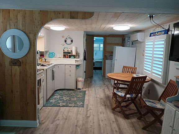 Flagler Beach Villas! This charming 1 bedroom home is a must see! If you want to live 2 blocks from the ocean and 1 block from the intracoastal, then this is your forever home! Everything in this home is new! New Roof,New Windows , Plantation shutters, New AC, New refrigerator, new microwave, washer and dryer, new electric and panel box, new flooring. Wrap around deck, outdoor shower for those Sandy toes! Decorative coastal decor. Partially furnished with remote control queen size bed. Amazing walk-in shower. Lights and fixtures have all been updated and replaced. Flagler beach a small quaint community! There are no property taxes, lot rent is only $850! All listing information is deemed reliable but not guaranteed and should be independently verified through personal inspection by appropriate professionals. Integrity Mobile Home Sales cannot guarantee or warrant the accuracy of this information, measurements or condition of any property. Measurements are approximate. Lot rent is subject to change.