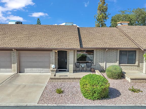 Welcome to your new home in Sunland Village! Nestled in one of Arizona's most sought-after 55+ communities, this well maintained 2-bedroom, 2-bath home is full of charm and convenience. Sunland Village offers an exciting lifestyle with many amenities, including golf, pool, spa, tennis, pickleball, billiards, fitness facilities, clubs, social events, and more! Step inside to find a spacious living room, Eat in Kitchen and built in desk area. The large master bedroom offers a walk-in closet, and step-in shower. The second bedroom is generously sized, versatile for guests and offers easy access to back covered patio and common area. Additional features include front patio, inside laundry room and large 1 car garage. HURRY, THIS IS PRICED TO SELL! Includes Refrigerator, washer and dryer.