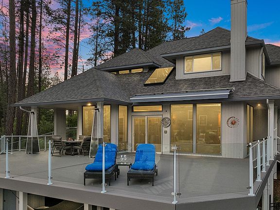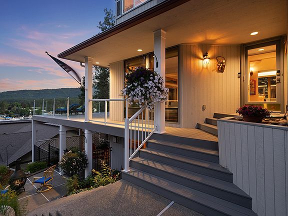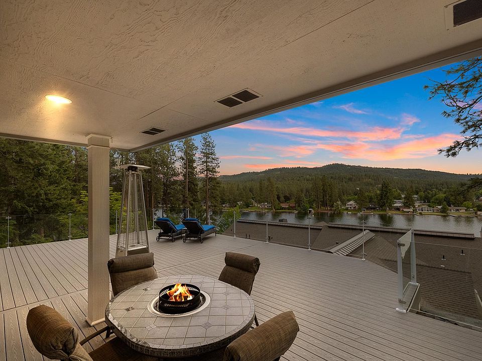 Spectacular panoramic views of the Spokane River, mountains and sunsets from this private, contemporary luxury estate! 5 bed 4 bath property w/ boat slip in deep water. This secondary waterfront property offers expansive sunlight w/ magnificent northwest design featuring soaring ceilings, towering windows, dramatic skylights, and stunning architecture! Privately nestled at the end of a quiet cul-de-sac, this home features a remodeled kitchen with new cabinetry, granite countertops, stainless appliances, as well as a complete master suite remodel with a serene bathroom setting that features a soaking tub and custom shower. Hardwood and LVP floors, reach out to an enormous deck with glass railing ready to entertain. Manicured low maintenance yard and 3-car garage. The walk out basement offers in-law quarter potential. Located conveniently directly adjacent to the property, you will find the access to the exclusive waterfront space, which includes your very own boat slip.