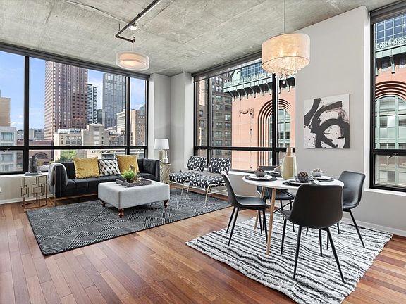 Discover urban elegance in this modern 2-bedroom | 2-bath high-rise corner unit across from the Harold Washington Library. Lounge on your spacious private balcony, but if you have to be inside, the walls of windows flood every room with tons of natural light. Enjoy beautiful hardwood flooring in the living and entertaining areas, carpet in the bedrooms. The open kitchen boasts stainless steel appliances and granite countertops with a nice long breakfast bar. No more lugging your laundry to a common room; enjoy your privacy with an in-unit washer and dryer. Building amenities include a common outdoor space, a roof deck, fully equipped gym, office center and club room. Additional conveniences include a doorman, elevator, heated garage space close to the door, bike room, and private huge storage room. Looking for fun things to do nearby? Enjoy the Art Institute, Grant Park, Millenium Park, the Willis Tower Skydeck, all manner of restaurants and retail. ..and the library of course! Embrace the vibrant city lifestyle in this chic urban haven!
