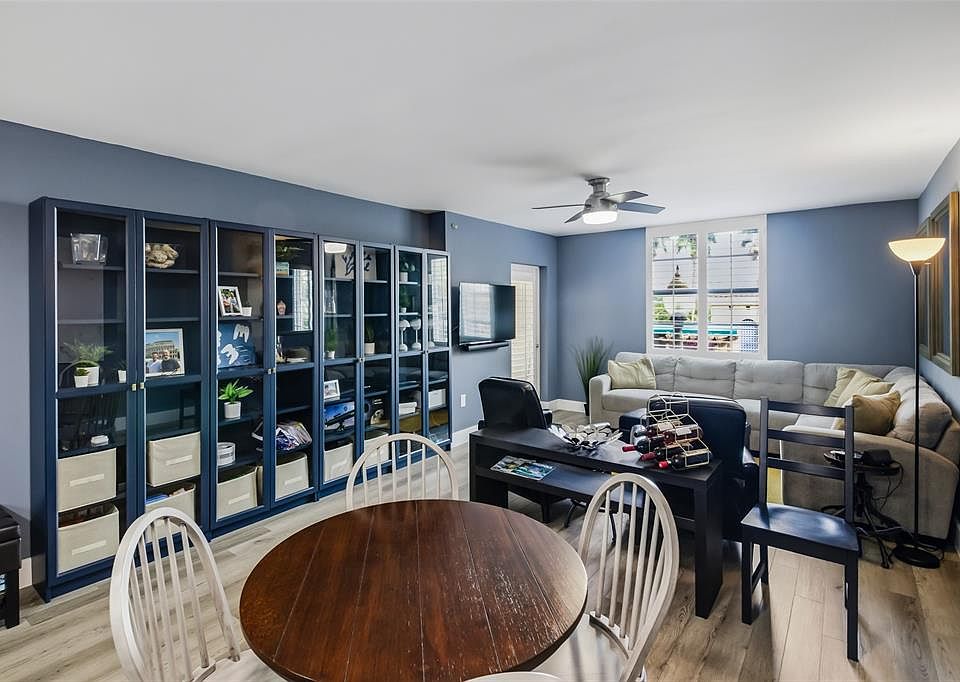 Private balconyDesigner finishesHeated poolTranquil poolOpen-concept layoutContemporary kitchenSleek grey laminate flooring