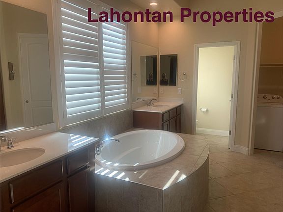 Located on Dayton Valley Golf Course with spectacular mountain views, 10 foot ceilings, gourmet kitchen with 7 foot island, double ovens, double pantries, granite counters and stainless steel appliances. Enormous living room 22 x 18 with gas fireplace, large master bedroom with walk in closet, tub and walk in shower with two separate vanities 15 x 17, second bedroom is 13 x 15, double car garage. One small pet on approval with additional deposit required.